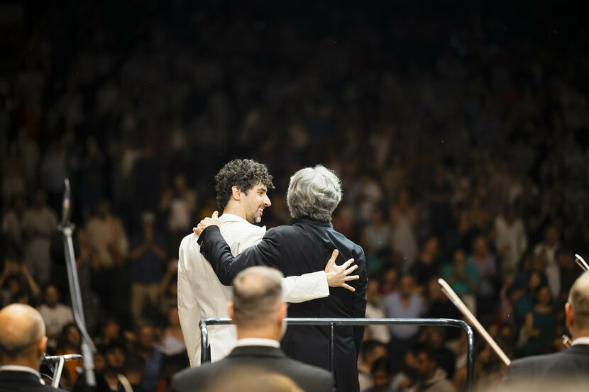 Den krönenden Abschluss des Klassik Open Air 2025 bildete das Konzert der Nürnberger Symphoniker am Samstag, 9. August. Pünktlich dazu kehrte auch das Sommerwetter in die Stadt zurück: Angenehm milde Temperaturen und die sanfte Lichtstimmung eines sommerlichen Abends lockten rund 80.000 Besuchende in den Luitpoldhain.